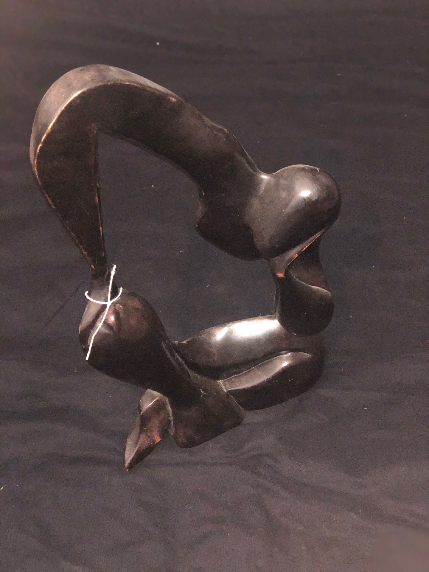 20"L X 7"W BROWN, BLACK, AND TAN, SPECKLED DANCER ABSTRACT CARVED IN GHANA BY ARTIST JERRY KOETY!